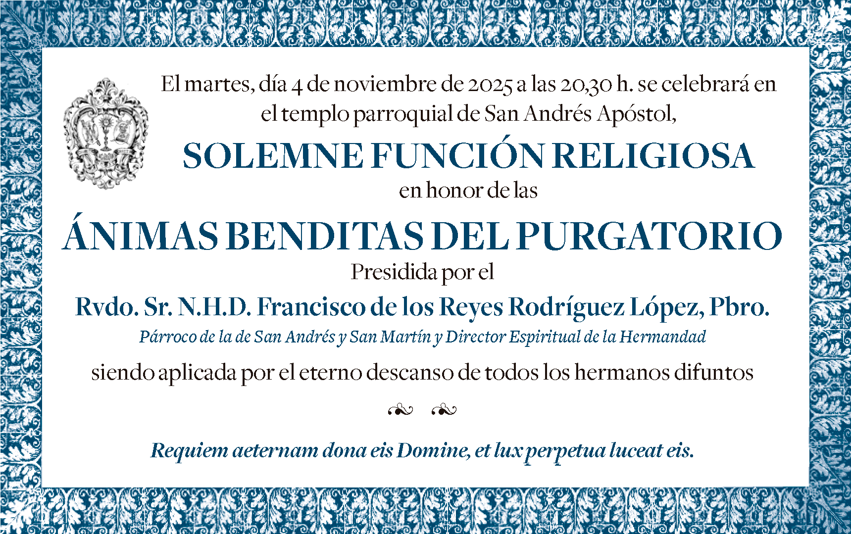 El martes día 4 de noviembre de 2025 a las 20,30 horas se celebrará en el templo parroquial de San Andrés Apóstol