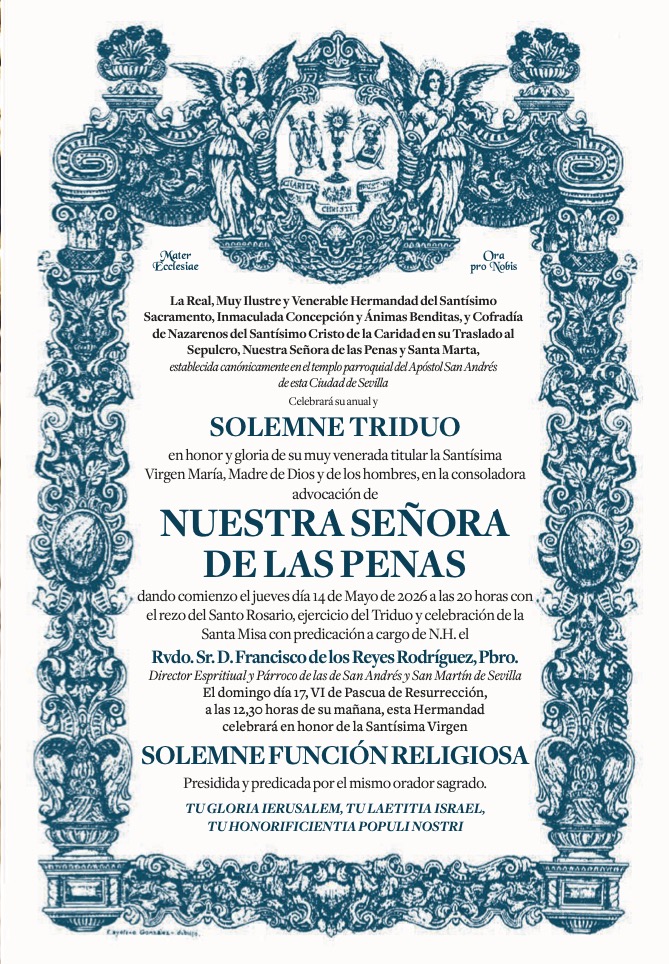 Durante los días 14 al 16 de MAYO del presente año de 2026 tendrá lugar en el templo parroquial de San Andrés el anual y SOLEMNE TRIDUO en honor y veneración de